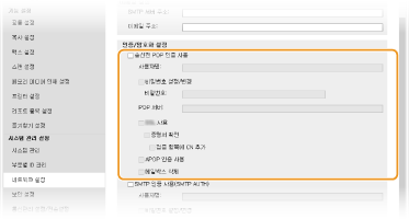 POP before SMTP 및 POP 서버와의 암호화된 통신 설정