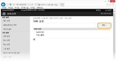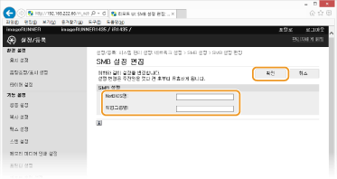 SMB(Server Message Block)는 파일과 프린터 등의 리소스를 네트워크에 연결된 2개 이상의 장치와 공유하기 위한 프로토콜입니다. 본 기기는 SMB를 사용하여 스캔한 문서를 공유 폴더에 저장합니다. 네트워크에 따라 NetBIOS 이름과 작업그룹명을 설정해야 하는 경우도 있습니다.