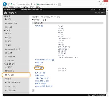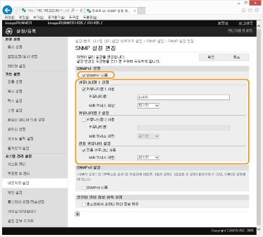 [SNMP 설정]을 클릭합니다.