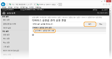 [디바이스 설정값 관리 설정]을 클릭합니다.
