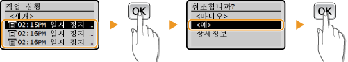 리모트 UI에서 취소리모트 UI의 [작업 상황] 페이지에서 인쇄를 취소할 수 있습니다: 인쇄 문서의 현재 상태 확인