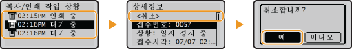 (시스템상황)을 사용하여 인쇄를 취소합니다.