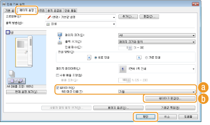 각 탭을 클릭하여 워터마크의 텍스트 또는 인쇄 위치를 지정합니다. 자세한 내용을 보려면 프린터 드라이버 화면에서 [도움말]을 클릭하십시오.