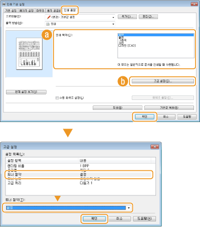 토너 절약 모드를 사용할 경우 가느다란 선과 인쇄 농도가 옅은 부분이 번질 수 있습니다.