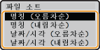 <날짜/시각 (오름차순)> 또는 <날짜/시각 (내림차순)>을 선택하면 수정 날짜 및 시간에 따라 파일이 정렬됩니다.