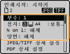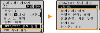 을 사용하여 <JPEG/TIFF 상세 설정> 선택