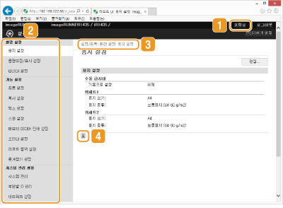 시스템 관리자 모드로 로그온한 경우에만 [시스템 관리 설정]에서 설정을 지정할 수 있습니다.