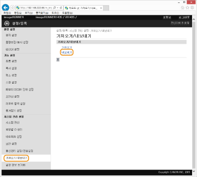 내보내기 과정 동안 동일한 화면이 유지되거나 내보내기가 진행 중임을 나타내는 메시지가 표시됩니다. 내보낸 파일을 저장하라는 메시지가 표시될 때까지 리모트 UI를 조작하지 마십시오.