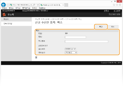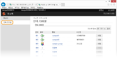 시스템 관리자 모드로 로그온한 경우에만 주소록을 등록하거나 편집할 수 있습니다.