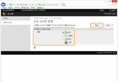 수신인 유형을 선택하고 [확인]를 클릭합니다.