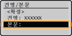 숫자 키를 사용하여 본문을 입력한 후 <확정>를 선택하고