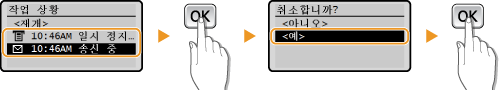 을 누른 직후에 전송을 취소하려면 조작 패널에서