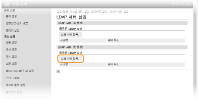 본 기기에서 지원하는 LDAP 서버는 Windows Server 2003/Server 2008/Server 2012 Active Directory입니다.