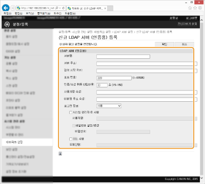 본 기기는 LDAPv3를 사용하여 LDAP 서버와 통신합니다.