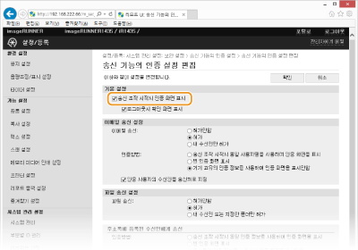 [송신 조작 시작시 동일 인증 정보를 사용하여 인증 화면을 표시]