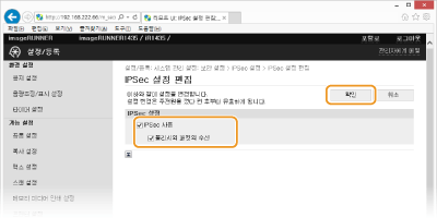 기기의 IPv6 주소를 통해 송수신되는 모든 IP 패킷에 대해 IPSec을 사용하려면 선택합니다.