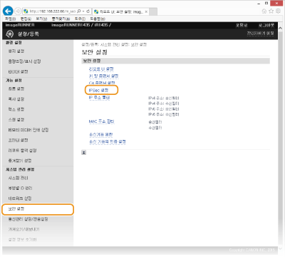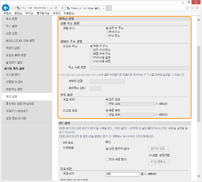 본 기기는 IPSec와 DHCPv6을 동시에 사용할 수 없습니다.
