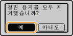 걸린 용지를 기기에서 무리하게 제거하지 마십시오용지를 무리하게 제거하면 부품이 손상될 수 있습니다. 용지를 제거할 수 없으면 가까운 Canon 공인 대리점에 문의하십시오.