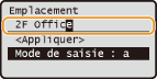 pour la saisie des nombres. Vous pouvez également saisir directement la valeur à l'aide des touches numériques si l'icône correspondante se trouve en haut et à gauche de l'écran comme dans l'illustration ci-dessous. Saisie du texte