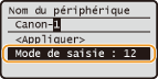 pour changer le type de texte saisi. Le type actuellement sélectionné est indiqué comme <Mode de saisie : A>. Vous avez le choix entre trois types : <A> (majuscules), <a> (minuscules) ou <12> (nombres).