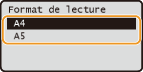 / pour sélectionner le format du document et appuyez sur .![]() |