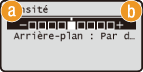 Vous pouvez régler la densité de la copie si le texte ou les images d'un document sont trop claires ou trop foncées. Vous pouvez aussi ajuster l'arrière-plan et supprimer la couleur d'arrière-plan si les pages du document sont légèrement colorées ou d'une teinte jaunâtre.
