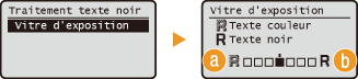 Lorsque vous numérisez des documents couleur, vous pouvez ajuster la couleur du texte noir ou proche du noir pour faire en sorte que le texte obtenu soit plus fidèle à l'original. Vous pouvez également ajuster la clarté du texte noir de façon à faciliter la lecture.