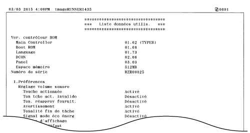 Cette liste n'inclut pas les informations concernant <Réglages réseau> et <Réglages de gestion du système>. Pour examiner toutes les options des réglages, imprimez la liste des données de l'administrateur système.