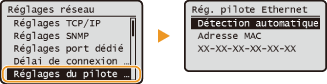 Connecter l'appareil à un concentrateur de commutation peut entraîner l'échec de la connexion même si l'adresse IP est correctement configurée. Ce problème peut être résolu en retardant le démarrage des communications de l'appareil. Définition d'un délai d'attente en vue de la connexion à un réseau
