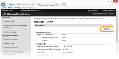Cliquez sur [Modifier...] dans [Réglages IPv4].