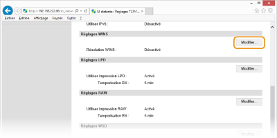 Cliquez sur [Modifier...] dans [Réglages WINS].