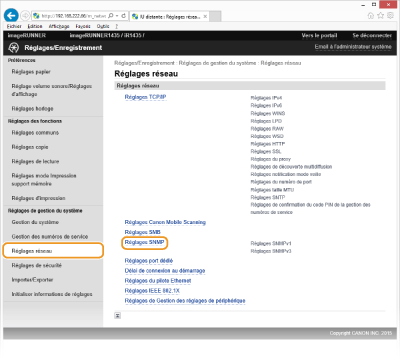 Utilisation du panneau de commandeVous pouvez activer ou désactiver les réglages SNMP à partir de