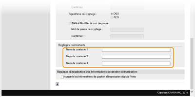 Définissez ces réglages seulement si [Authentification Oui/Cryptage Oui] ou [Authentification Oui/Cryptage Non] a été sélectionné pour [Réglages de sécurité].