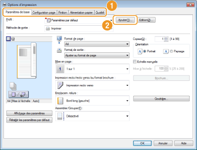 Modifiez les réglages à enregistrer dans le profil et cliquez sur [Ajouter].