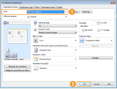 Sélectionnez le profil qui correspond le mieux à vos besoins et cliquez sur [OK].