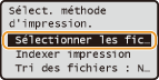 pour sélectionner <Sélectionner les fichiers à imprimer> et appuyez sur