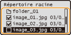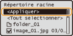 Lorsque vous sélectionnez <Date/Heure (Croissant)> ou <Date/Heure (Décroissant)>, le classement des fichiers s'effectue selon la date et de l'heure de modification des fichiers.