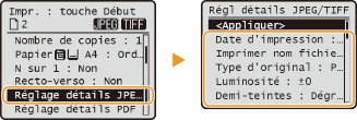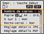 Pour définir les réglages d'impression pour les fichiers JPEG/TIFF uniquement