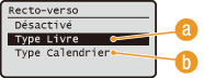 <Recto-verso> n'est pas compatible avec certains types et formats de papier. Papier