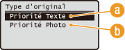 pour sélectionner <Priorité Photo> ou <Priorité Texte> et appuyez sur