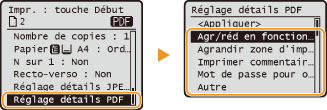 Pour définir les réglages d'impression pour les fichiers PDF uniquement