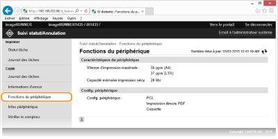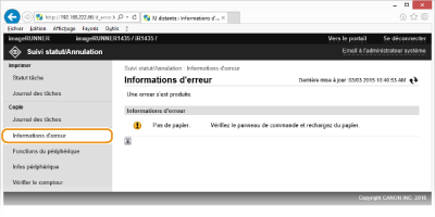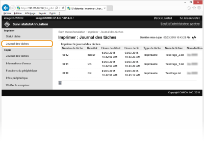 Si vous avez saisi votre nom d'utilisateur en mode Utilisateur final, seuls les documents que vous imprimez s'affichent.