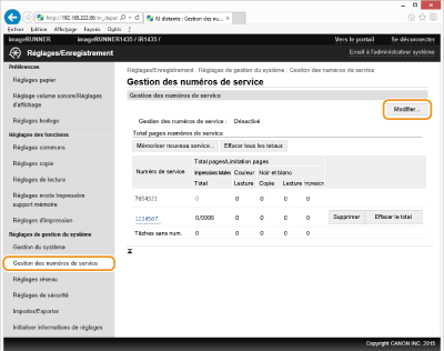 Cliquez sur le lien correspondant figurant sous [Numéro de service :] pour modifier le numéro.