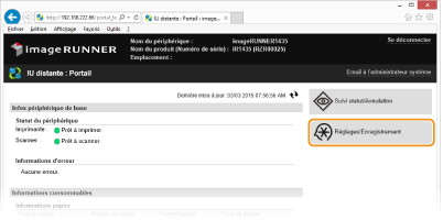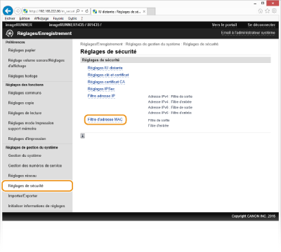 Vérification des erreurs de saisie En cas de saisie incorrecte des adresses MAC, vous risquez de ne pas pouvoir accéder à l'appareil via l'interface utilisateur distante. Si cela devait se produire, il faudrait régler <Filtre d'adresse MAC> sur <Désactivé>. Filtre d'adresse MAC