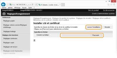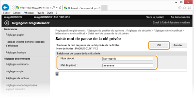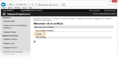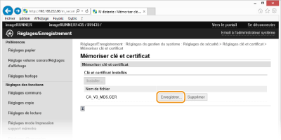 Cliquez sur [Mémoriser clé et certificat] ou [Mémoriser certificat CA].