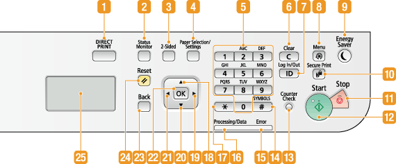 Press to check the status of printing, to view the usage history, or to view the network settings such as the IP address of the machine. You can also check the status of the machine, such as the remaining amounts of paper and toner, or whether any errors occurred.