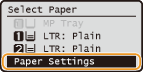 After the default paper setting is registered, the paper setting screen is not displayed when paper is loaded, and the same setting is always used. If you load a different paper size or type without changing the paper settings, the machine may not print properly. To avoid this problem, disable the default setting by selecting <Off> in step 3, and then load the paper.