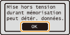 L'enregistrement commence. Attendez que le message <Installé. Appliqué après mise hors/sous tension machine.> s'affiche.