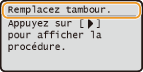 Si l'un des messages suivants s'affiche à l'écran, veuillez remplacer l'unité de tambour. Pour plus d'informations, contactez votre distributeur régional Canon agréé.