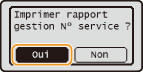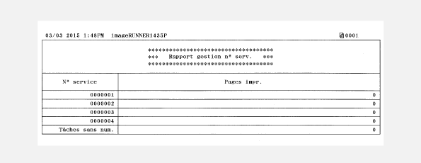 Lorsque la fonction Gestion des numéros de service est activée, vous pouvez imprimer un rapport pour connaître le nombre total de pages imprimées pour chaque numéro de service. Le rapport vous permet de surveiller l'utilisation de l'appareil et d'améliorer la gestion.
